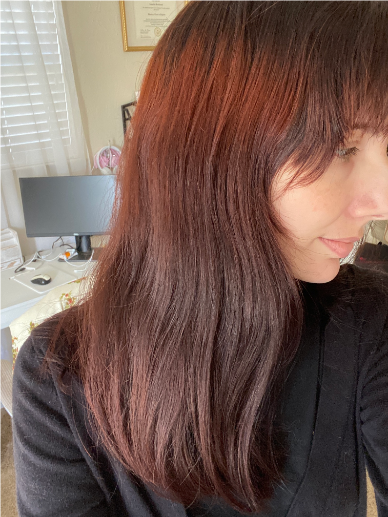 4/16/23. I’ve been growing out the indigo since last summer. The henna-only growth is to my brows. I also got a layered haircut in January that I haven’t liked. Another thing to spend a long time growing out.